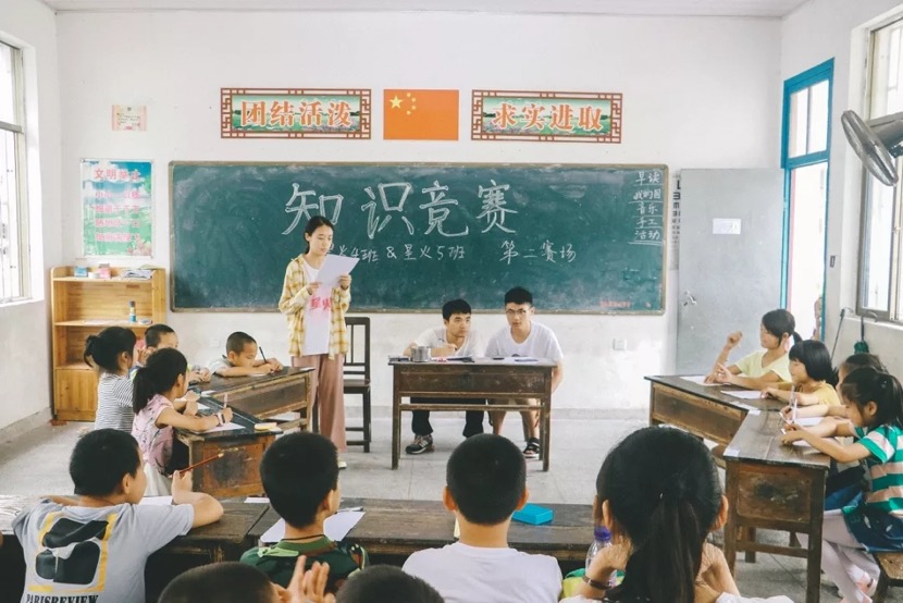 除多样的课程外,支教团还设计了丰富多彩的课余活动。7月8日下午,支教团在学校里举办了“厉害了我的国”主题知识竞赛,赛场上比赛双方针锋相对,不时激荡出智慧的火花,比赛强烈激发了孩子们的民族自豪感,不少孩子都在赛后发出备受鼓舞的感叹;7月10日,支教团开展了趣味运动会,支教团队员和孩子们组成六个队伍,共同挑战七个不同的项目,其中拔河项目的竞争尤为激烈。运动会比赛精彩纷呈,让孩子们体会到了团结协作重要性。支教队还给孩子们带来了一个不一样的“泼水节”,用水球大战的新颖方式呈现出孩子和队员们精彩互动的时刻;7月15日,支教团策划了温暖人心的告别晚会,7个班级分别展示了精心准备的节目,支教队员们也献上了精彩的表演,赢得了台下的同学和家长的阵阵掌声。晚会结束后,孩子们和队员们依依惜别,久久不愿离去,18天朝夕相处的感情再次升华,婺源县电视台也对告别晚会进行了进行了全程报道,记录下了这一美好的时刻。